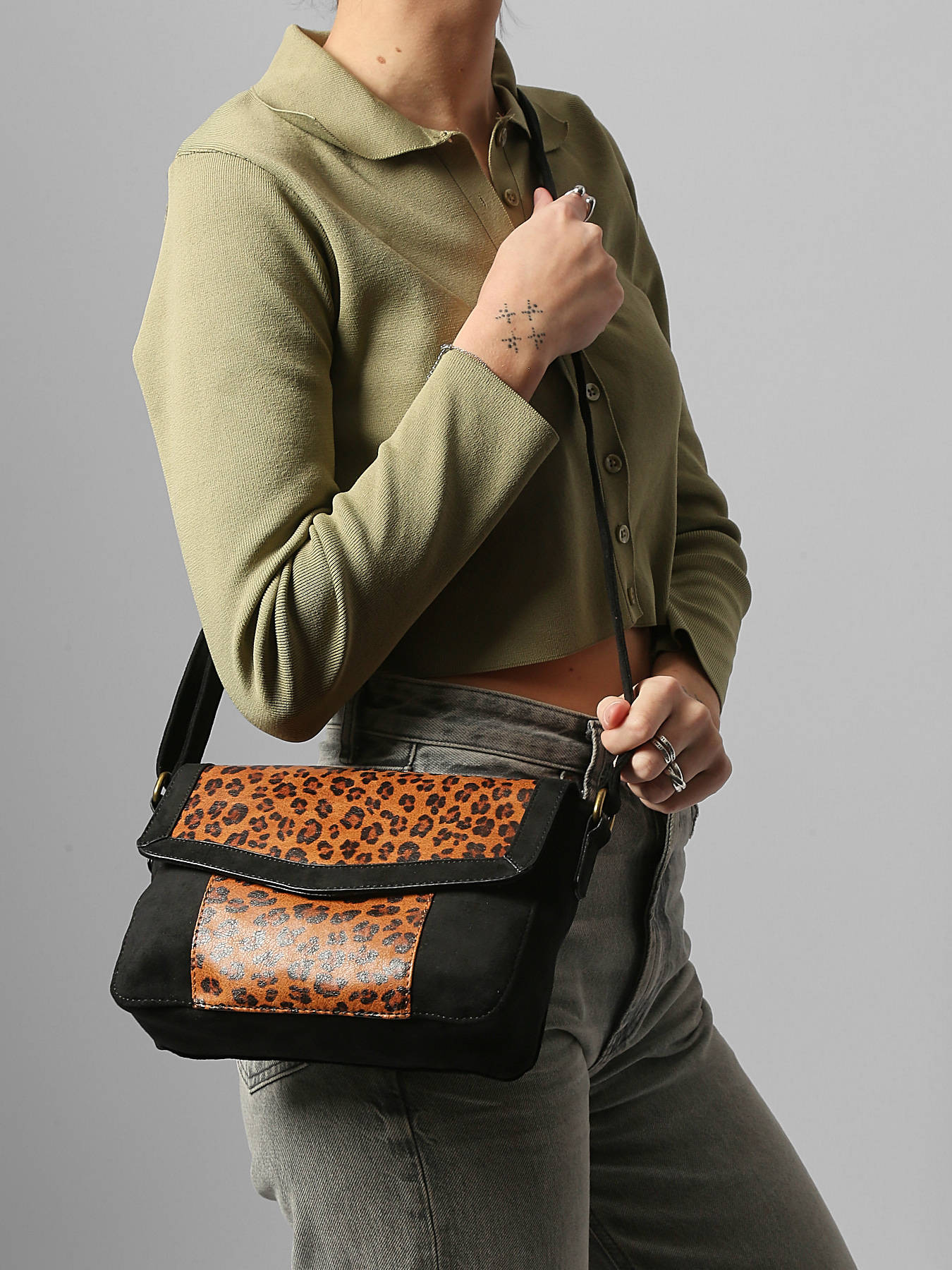 • Cross Body Tas Leopard David jones Zwart leopard CM7663