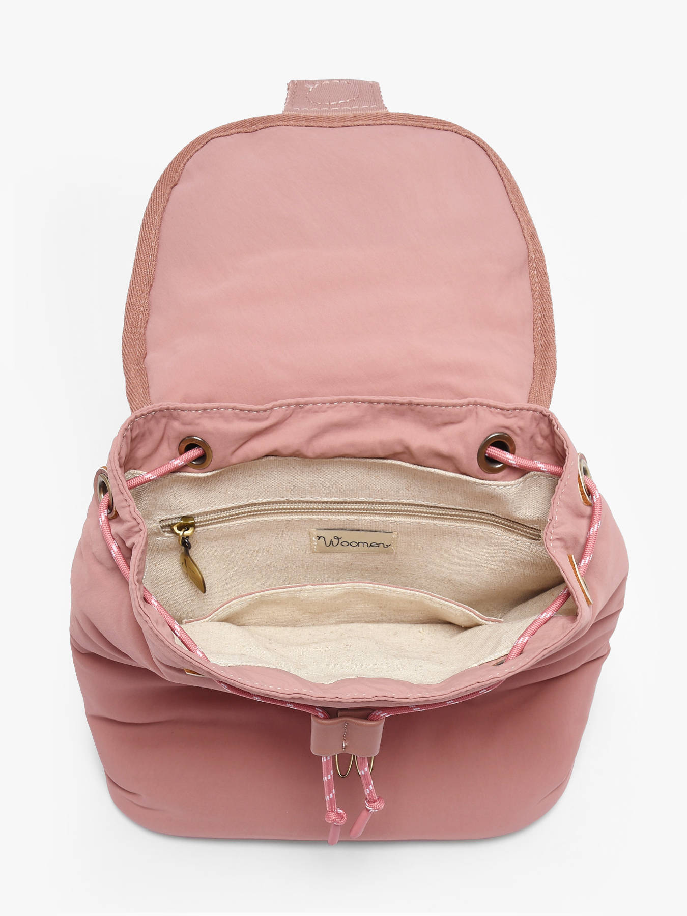 De rugzak WOOMEN uit de lijn Primevère combineert stijl, praktisch gebruik en duurzame betrokkenheid. Het hoofdmateriaal van gerecycled nylon, gevoerd met katoen en linnen, biedt lichtheid en stevigheid. De decoratieve koorden en het onderscheidende logo geven het model originaliteit en raffinement. Deze rugzak beschikt over een flap met magneetsluiting en trekkoord, een ritsvak aan de achterkant, en binnenin een ritsvak en een steekvak om je essentials eenvoudig te organiseren. Het gouden resinelogo maakt het ontwerp compleet, waardoor deze rugzak een elegant en functioneel accessoire is, perfect voor dagelijks gebruik.