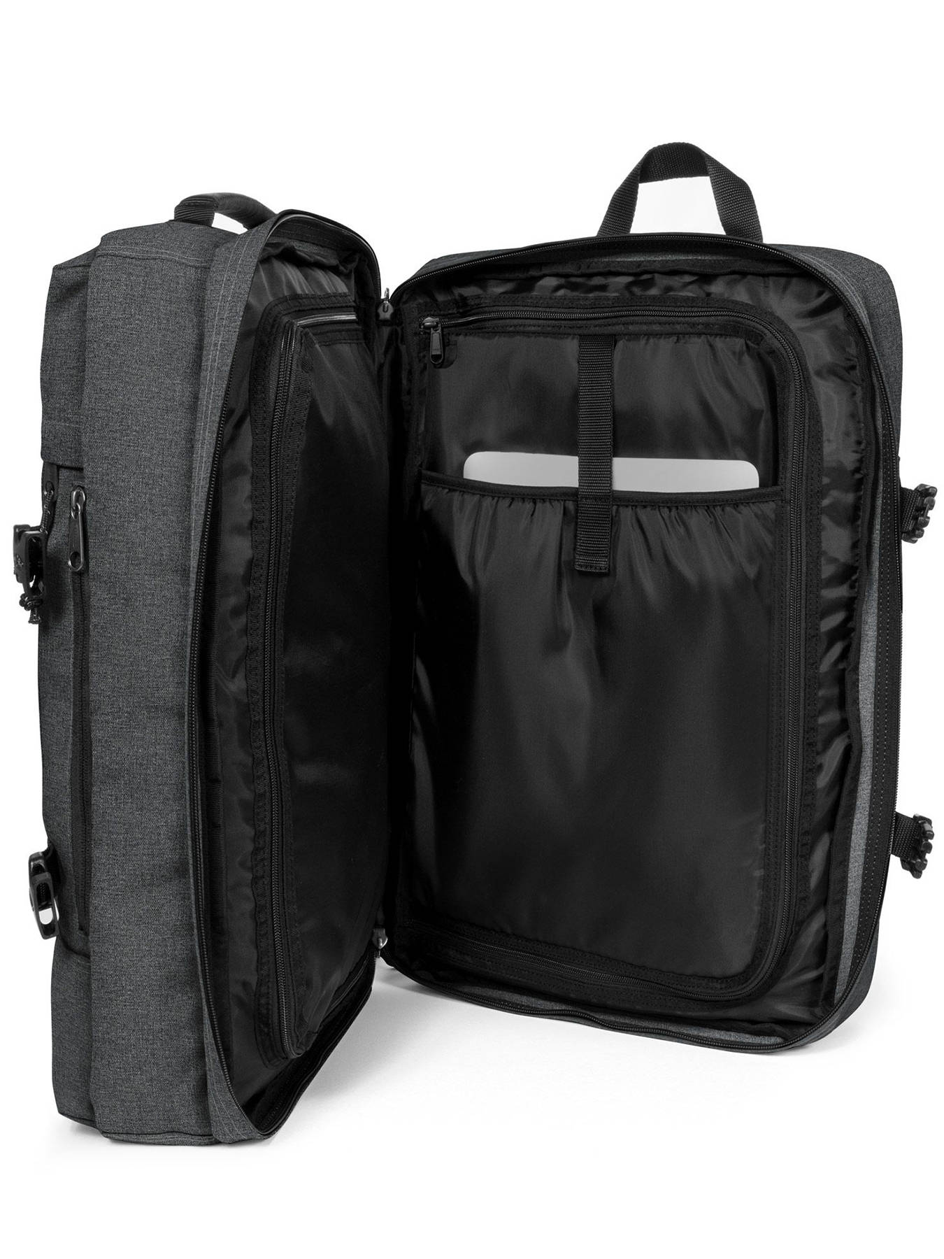 Eastpak vergezelt u op uw vliegtrips Deze reistas is enorm praktisch dankzij de grote opbergruimte die opgedeeld is in twee afzonderlijke compartimenten met ritssluiting. In deze Eastpak tas vindt u ook een aparte ruimte voor een computer van maximaal 17 inch. Uitgerust met gewatteerde schouderbanden en twee handvaten, kunt u deze Eastpak reistas naar wens op uw rug of in uw hand dragen. Dankzij de afmetingen die voldoen aan de normen voor handbagage, kunt u met deze Eastpak reistas het vliegtuig nemen.