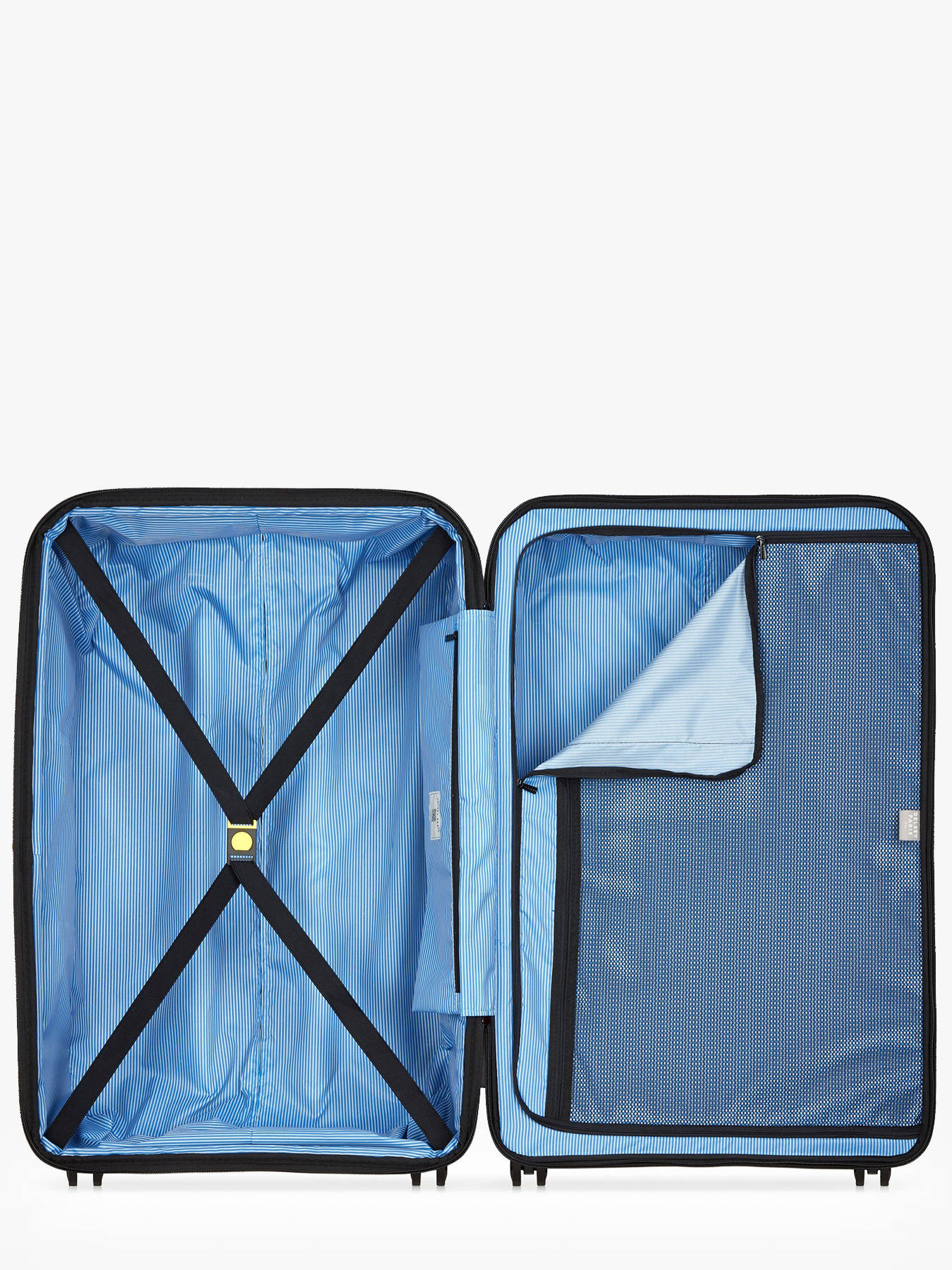 De harde koffer Delsey Lutèce is de ideale keuze voor lange verblijven en biedt een aanzienlijk volume (106 L) in een licht en duurzaam ontwerp. Bekroond met een Red Dot Design Award biedt de polypropyleen schaal een krasbestendige afwerking en weegt ze slechts 3,6 kg. Deze grote, uitbreidbare koffer (79 x 49 x 32/34 cm) past zich aan al uw behoeften aan door zijn ruimte te vergroten dankzij de eenvoudig te bedienen uitbreidingsplooi. De veiligheid van uw bezittingen wordt gegarandeerd door de gepatenteerde SECURITECH® 2-sluiting, die drie keer beter bestand is tegen inbraak dan een klassieke ritssluiting, aangevuld met het TSA-slot (008). Het rijcomfort is uitzonderlijk soepel op elke ondergrond dankzij de vier uiterst wendbare dubbele wielen. De binnenkant is ontworpen voor gebruiksgemak en is verdeeld in twee compartimenten met een scheidingsnet, een transparante meshzak en elastische riemen om uw spullen op hun plaats te houden. Kies voor Lutèce voor serene, veilige en stijlvolle reizen.